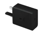 The Samsung 45W Power Adapter, priced around 100 AED, offers super-fast charging for compatible Samsung devices. It features a USB-C connection, a 45W output for rapid charging, and is designed with safety features like overcurrent and overheating protection. The adapter also comes with a Type-C to Type-C cable.Â